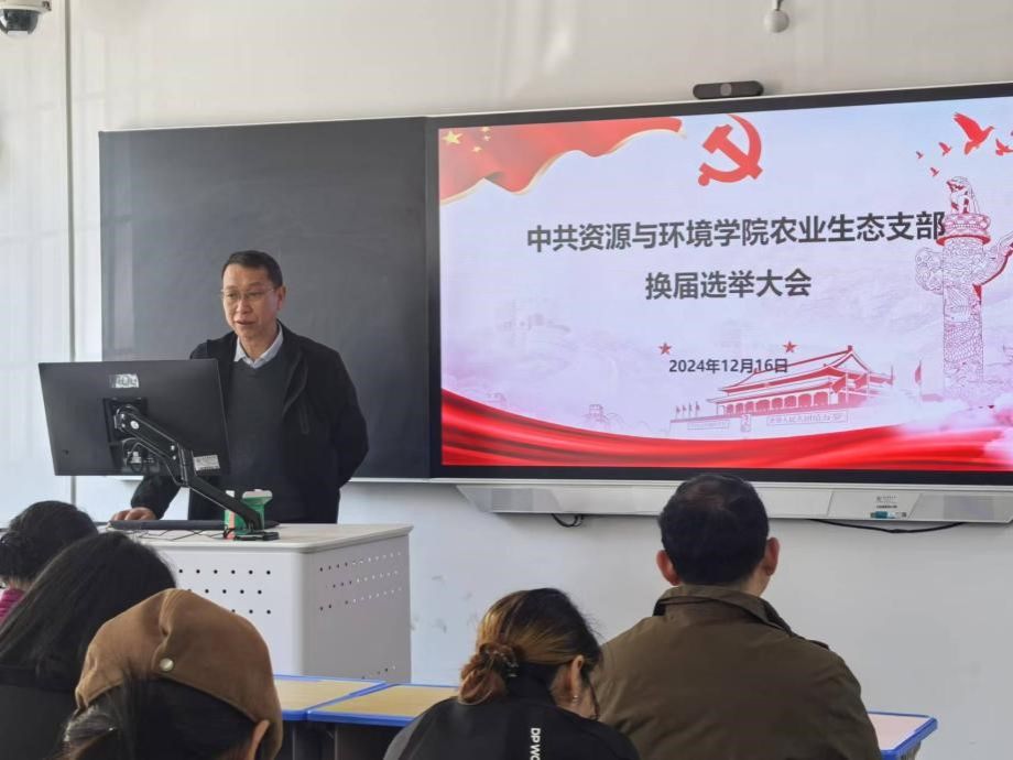 2024年12月16日下午,农业生态党支部在厚德楼教室召开换届选举大会,公司党委委员王海宁同志出席会议。